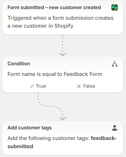 Use Shopify Flow to automatically tag customers who submit a feedback form.